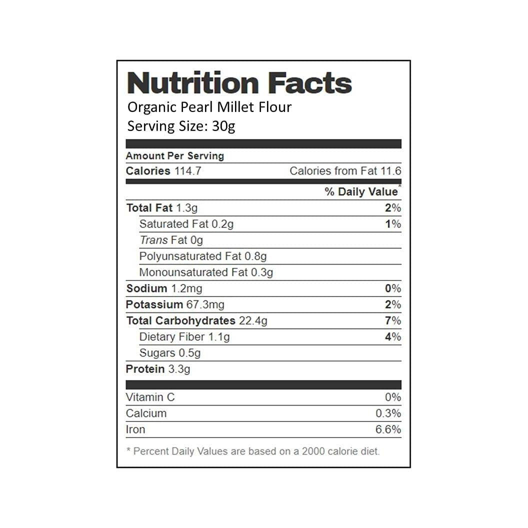 - Aiva Organic Pearl Millet Flour is 100% Natural, No preservatives, Non-GMO PREMIUM Gourmet Food Grade Flour.