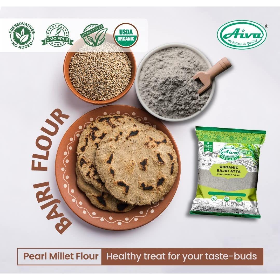 - Aiva Organic Pearl Millet Flour (Bajri Flour) is made from finely grinding Whole Pearl millet grain.