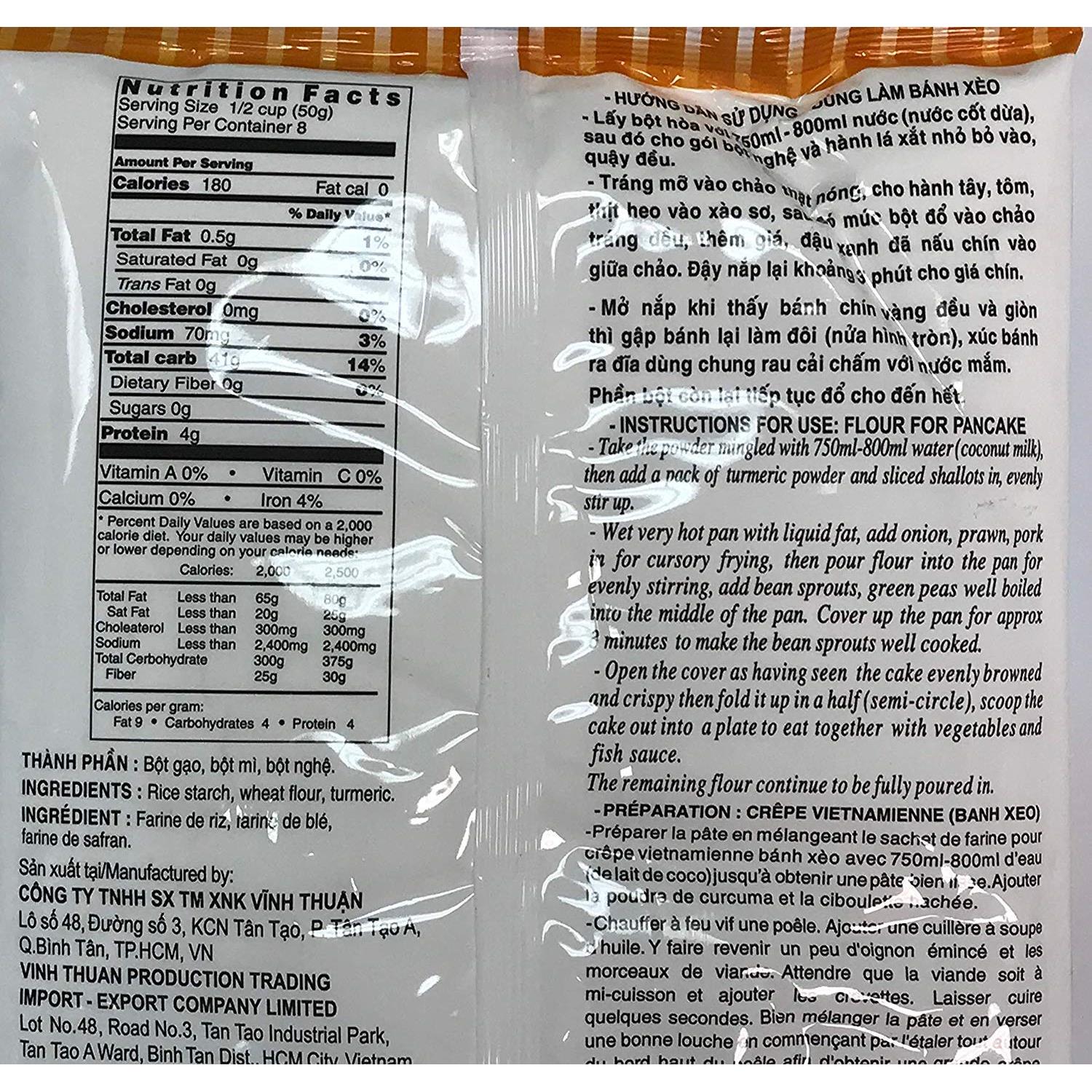 - Vinh Thuan Flour For Pancake (Bot Banh Xeo)in 14.01oz (400g)pack. Delicious Taste. Huong Vi Tuyet Voi. Product of Vietnam. Pate A La Pour Le Crepe.