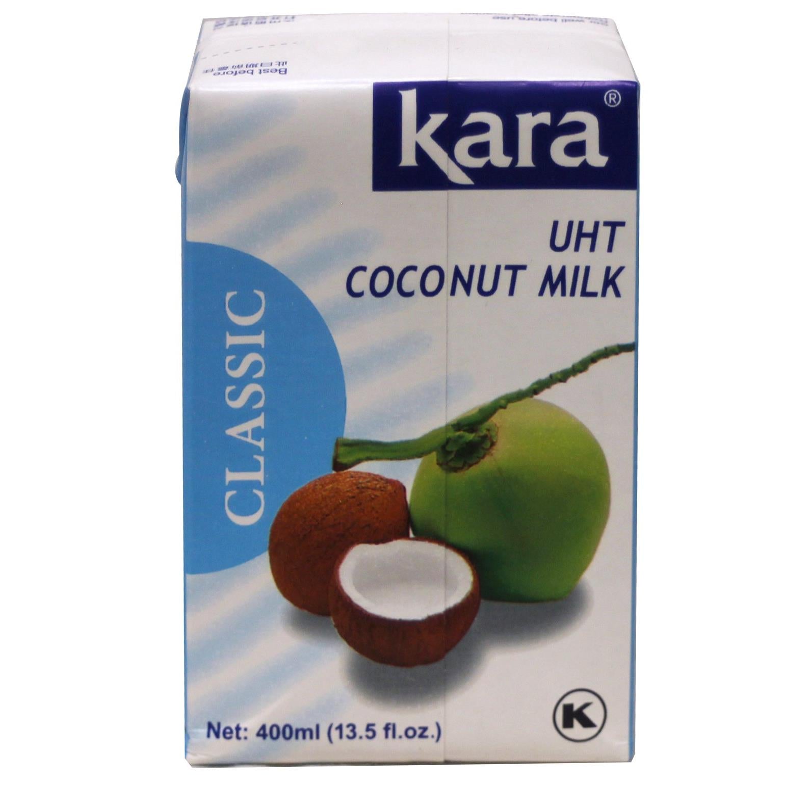 Kara UHT Natural Coconut Milk in 13.5fl oz (400ml) pack. Bringing you fresh coconuts in convenient and environmentally friendly packs, Kara UHT Coconut Cream and Classic Coconut Milk are Ultra High Temperature (UHT) processed and aseptically packed for the highest standards of hygiene and quality. Be overwhelmed by the irresistible aroma and natural great flavor of coconuts! Product of Singapore. Coconut Milk Uses:Ideal for: Curries, stews, soups, dips, sauces, dressings, marinades, beverages, yoghurt bases, jelly, ice cream, puddings etc.Halal Certified and#1581and#1604and#1575and#1604 | Kosher Certified and#1499and#1513and#1512 (D) | All Natural and#8362