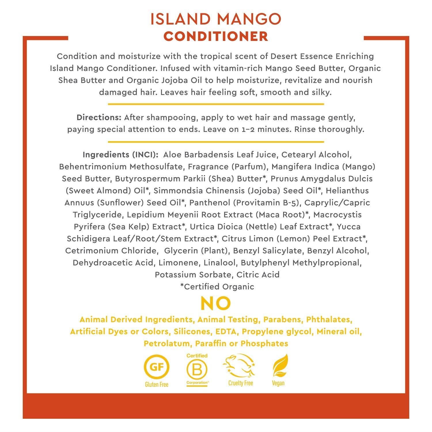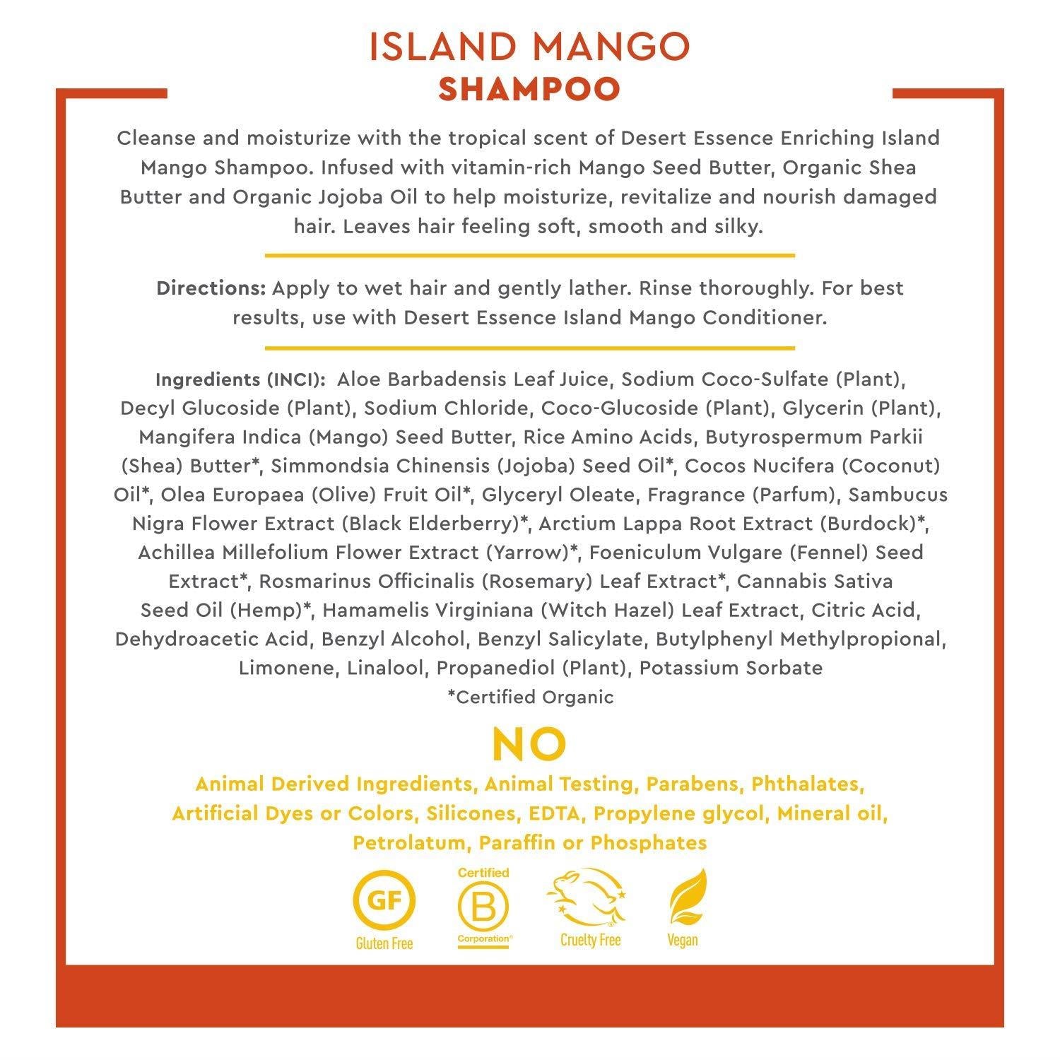 - BUNDLE SET - Includes one 8 fl. oz. bottle of Desert Essence Mango Island Shampoo & one 8 fl. oz. bottle of Desert Essence Mango Island Conditioner