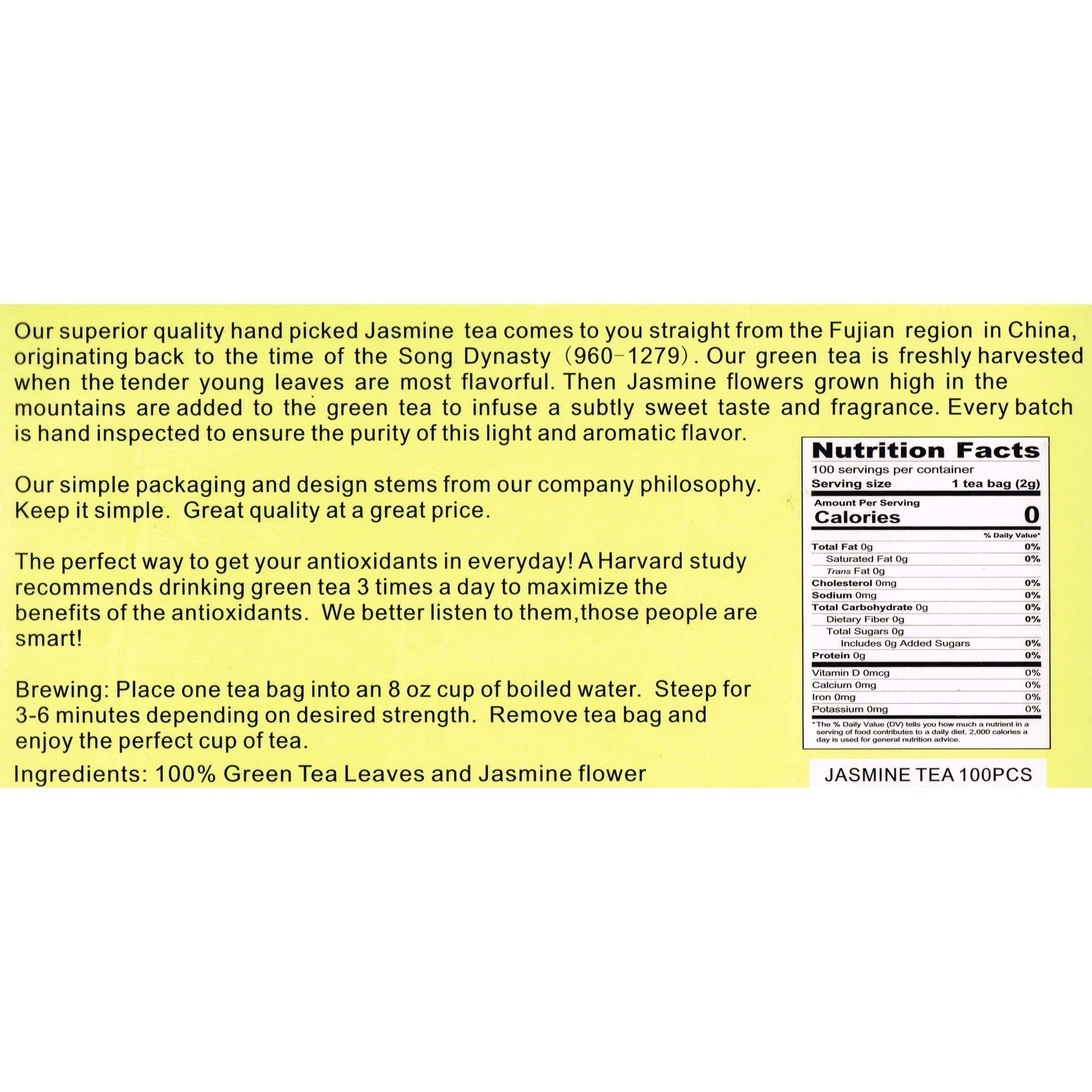 - Green Fresh Jasmine Tea 100% All Natural, (200 g) 100 Tea Bags Individually Wrapped
