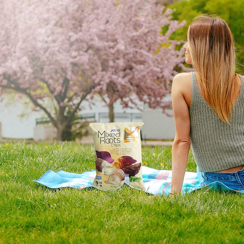 Jans Mixed Roots Chips is a healthy, unique and delicious alternative to ordinary potato chips. Our flavorful chips can satisfy your craving for something crunchy, something savory, or something a little sweet. Made from fresh Purple and Orange Sweet Potato, in addition to Cassava and Taro, the root of an exotic tropical plant, our chips have twice the fiber and 30% less fat than other potato chips. And if that's not enough to convince you to try our chips, did we mention that this healthy alternative is gluten free, contains no trans fat, and is loaded with vitamin E!? So go ahead! fall in love with our Mixed Roots Chips! We'll guarantee that you'll enjoy every single bit of it.