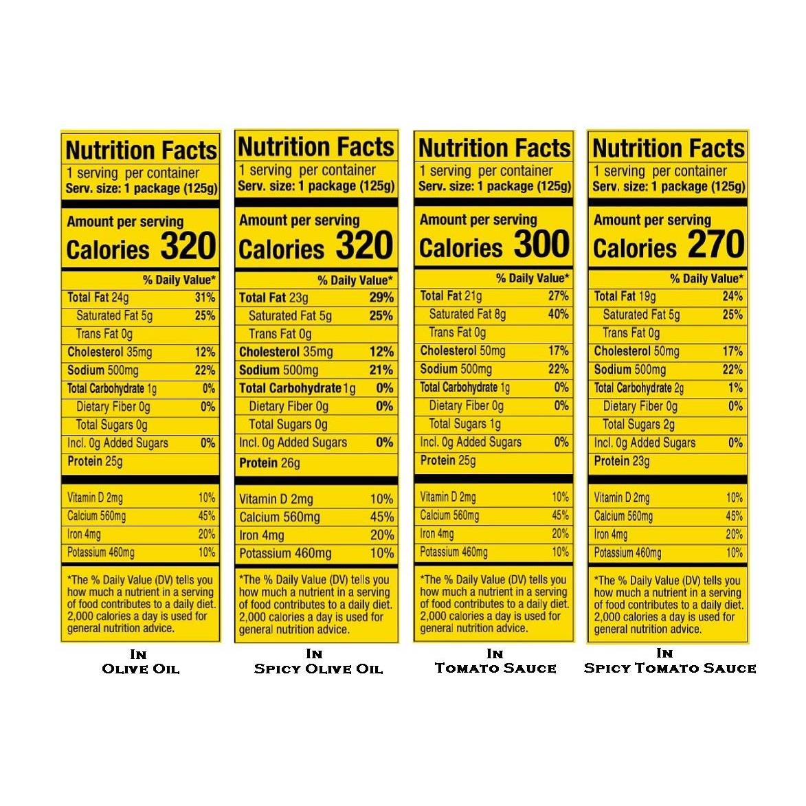 - SAMPLE ALL THE NURI GOURMET SARDINES | 8 cans of the following products are included in this bundle | 2 cans Nuri Portuguese Sardines In Pure Olive Oil (4.4 oz/can) | 2 cans Nuri Portuguese Sardines Spiced in Olive Oil (4.4 oz/can) | 2 cans Nuri Portuguese Sardines in Tomato Sauce and Pure Olive (4.4 oz/can) | 2 cans Nuri Portuguese Sardines Spiced Tomato Sauce and Pure Olive Oil (4.4 oz/can)