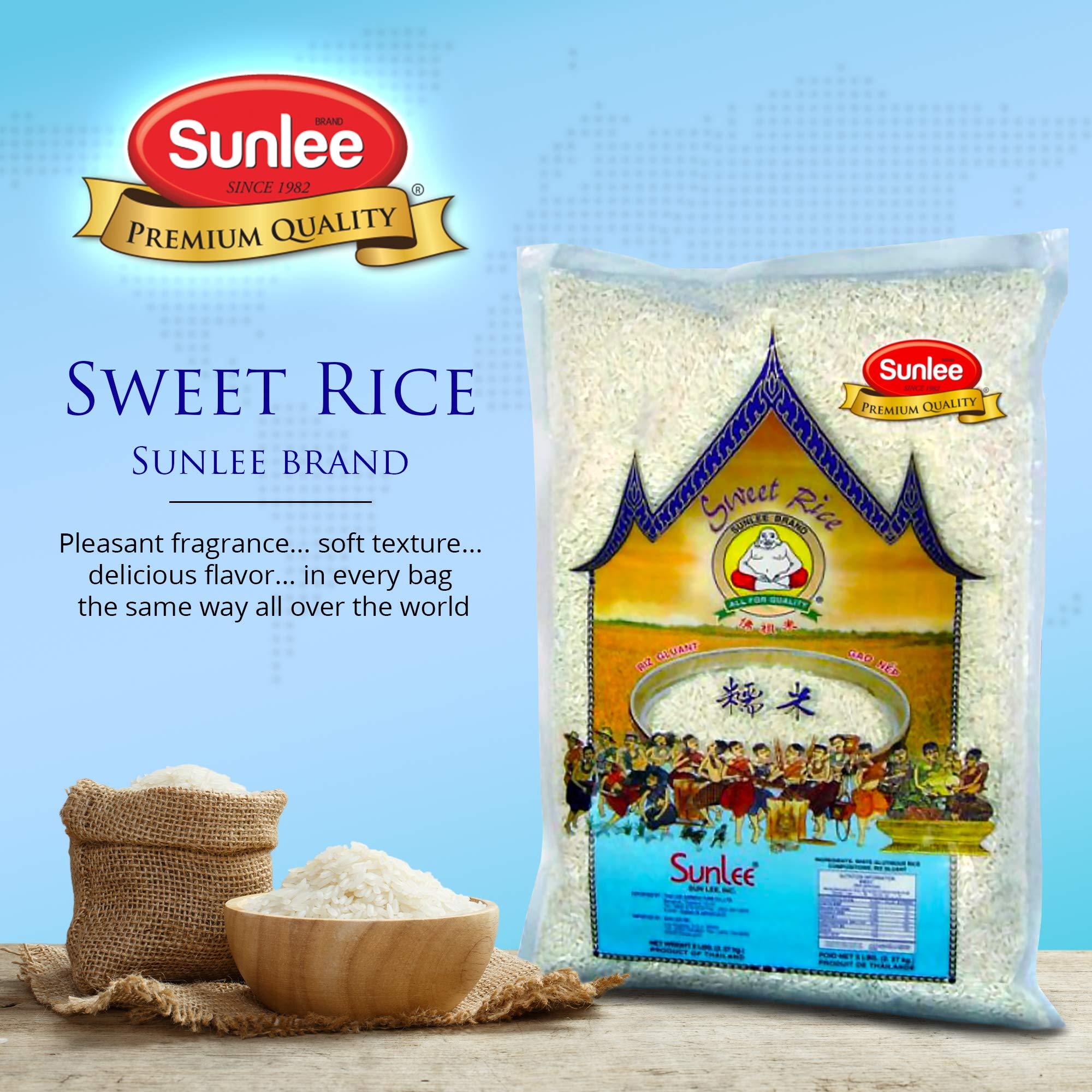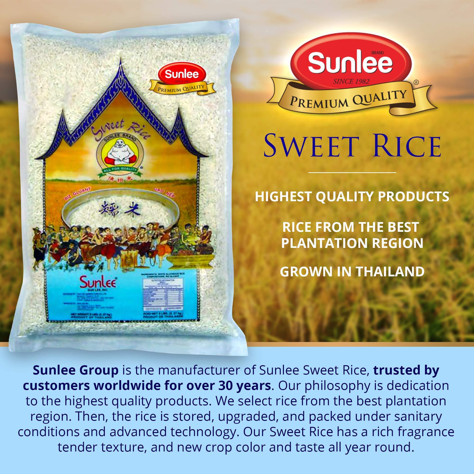 Sunlee Thai Sweet Rice - Premium Sticky Rice for Desserts or Rice Cakes, Great for Gluten-Free Diets, 5 Pounds (Pack of 1)