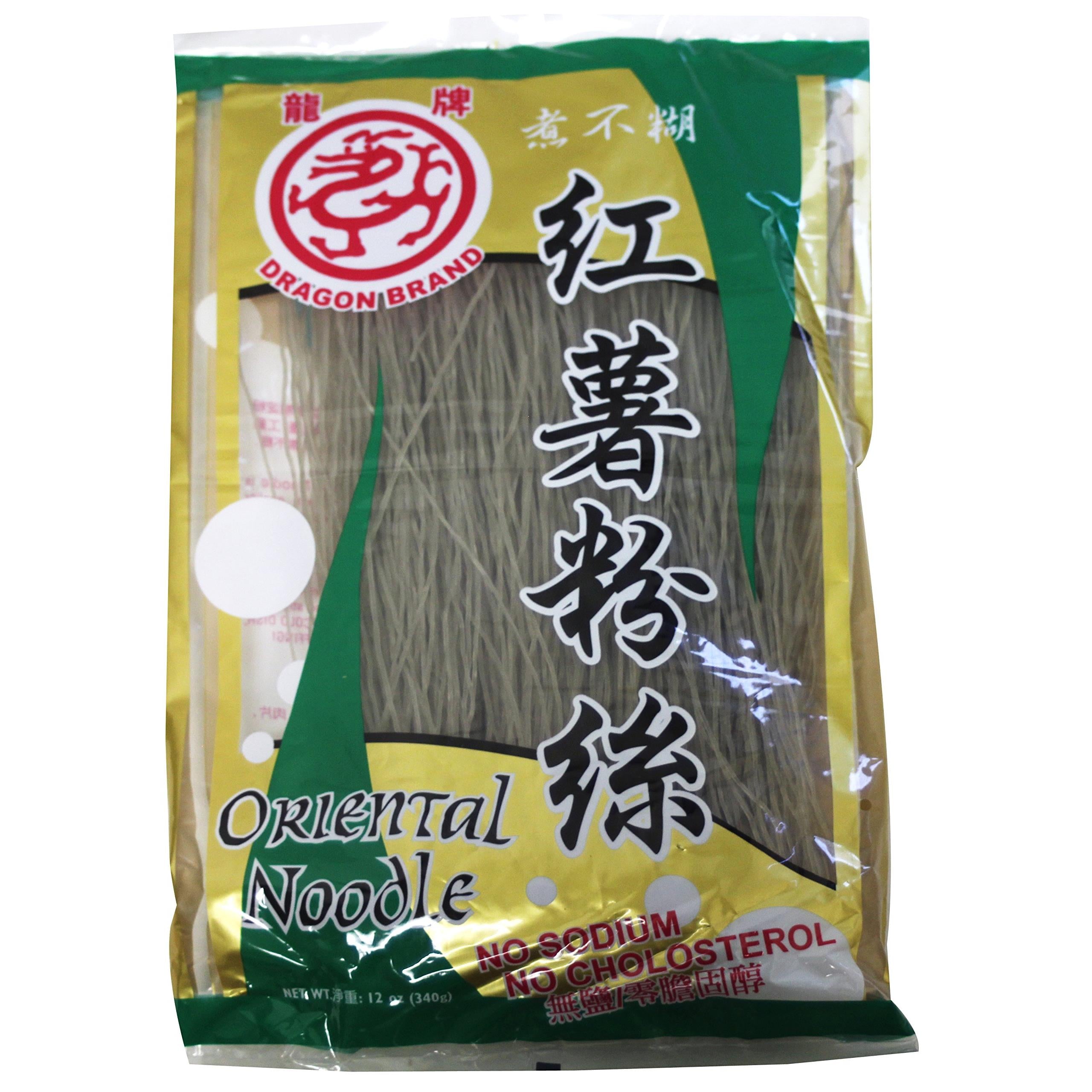Dragon Brand Sweet Potato Vermicelli is produced with the highest quality ingredients such as refined starch and natural mineral water. The uniqueness of its texture is refreshing to our taste buds. The crystal silky color is pleasing to our eyes. It can be cooked for a long period of time without being too salt. Its suitable for stew, stir fry cold dish, soup or even used in stuffingi. Product of China.
